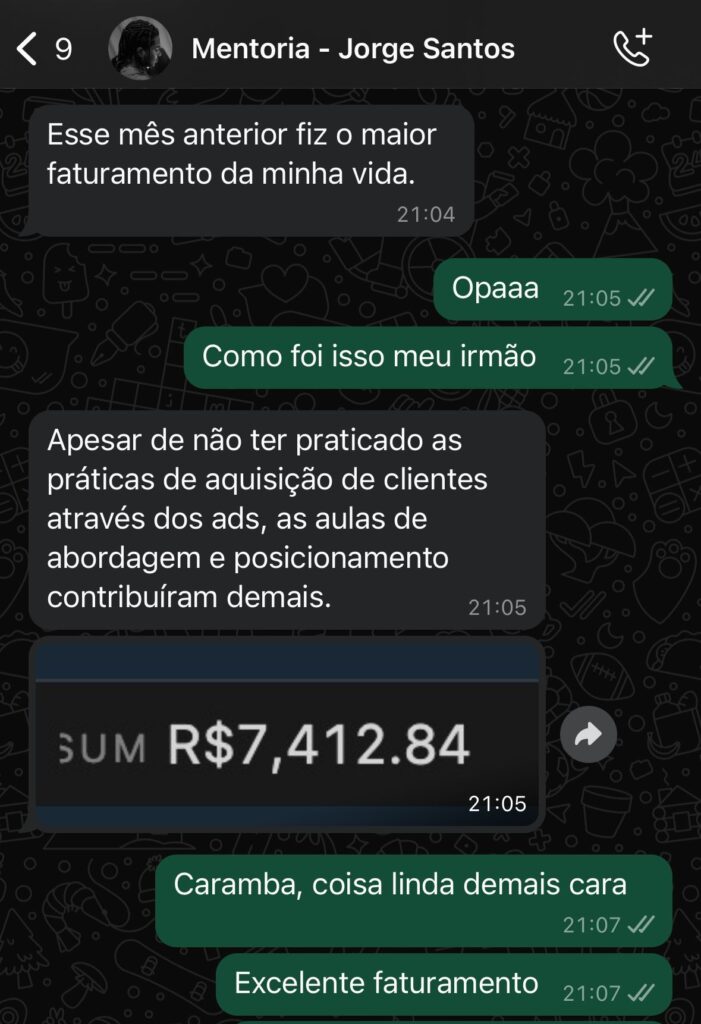 Faremos isso através do meu modelo comprovado de faturamento, sem que você precise depender de indicações, criar uma tonelada de conteúdo, fazer prospeção fria com quem não quer comprar de você, e sem precisar também montar equipe ou de uma mega-estrutura.