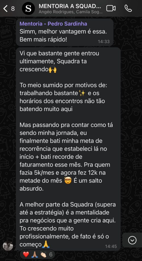 ✅ Mentorias com o Estrategista da Squadra para ele analisar o seu negócio e as suas campanhas